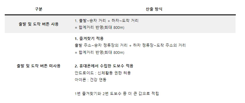 - 대중교통 이용 전후 보행이나 자전거의 이동 거리를 측정