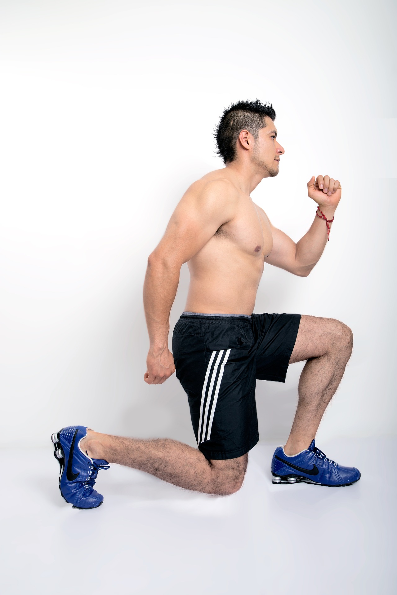 런지는 몸의 전체적인 균형 및 중심을 잡아주는 운동입니다. 런지 자세는 한쪽 발은 앞으로 하고, 반대쪽 발은 뒤로 뺀 다음 무릎을 구부리면 됩니다. 이때, 앞발은 무릎의 각도가 90°가 되도록 구부린 뒤 뒷발을 무릎이 바닥에 닿기 바로 직전까지 구부려야 합니다.