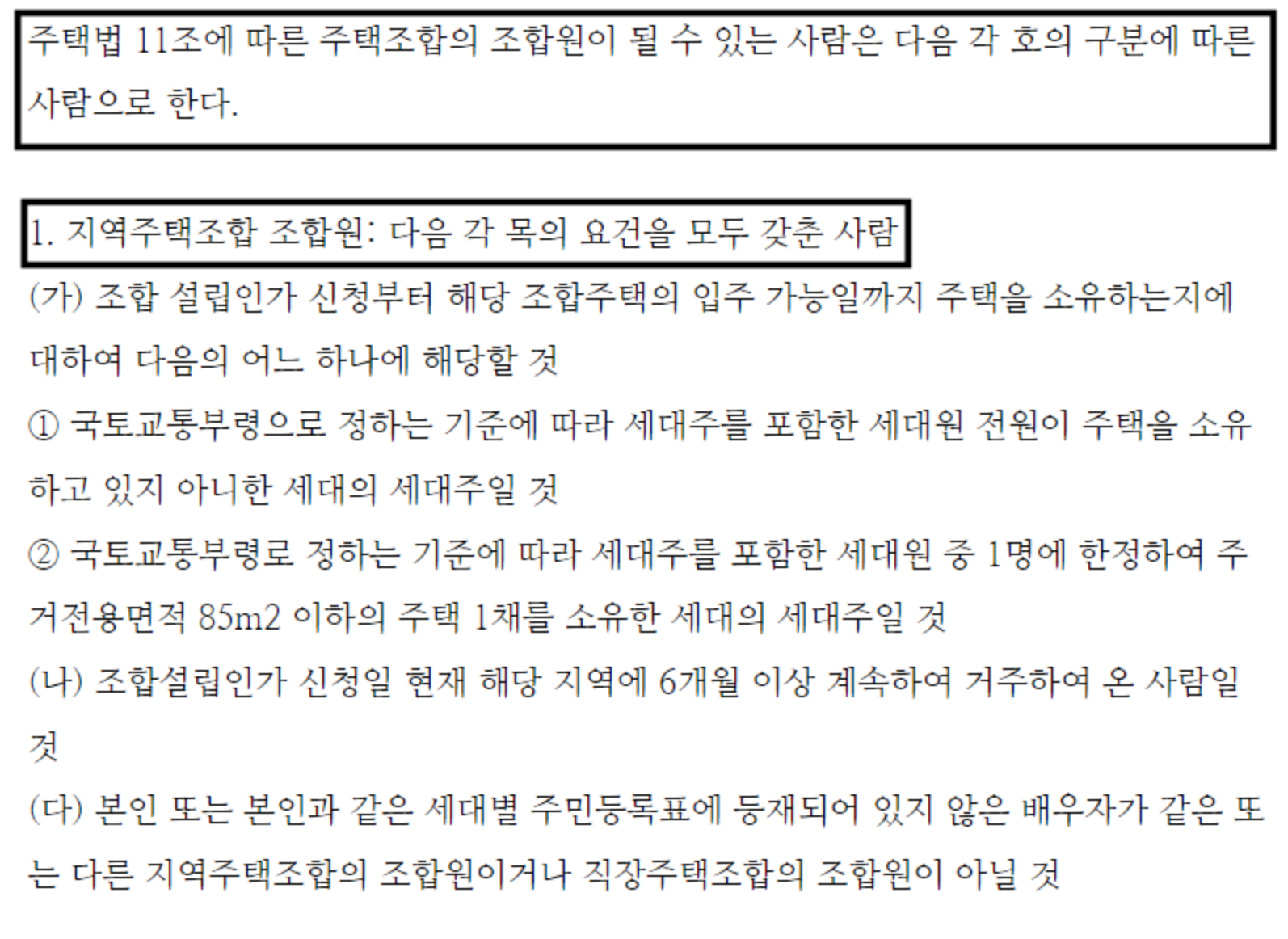 2. 지역주택조합 자격 - 주택법 시행령 제2조