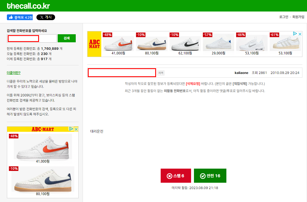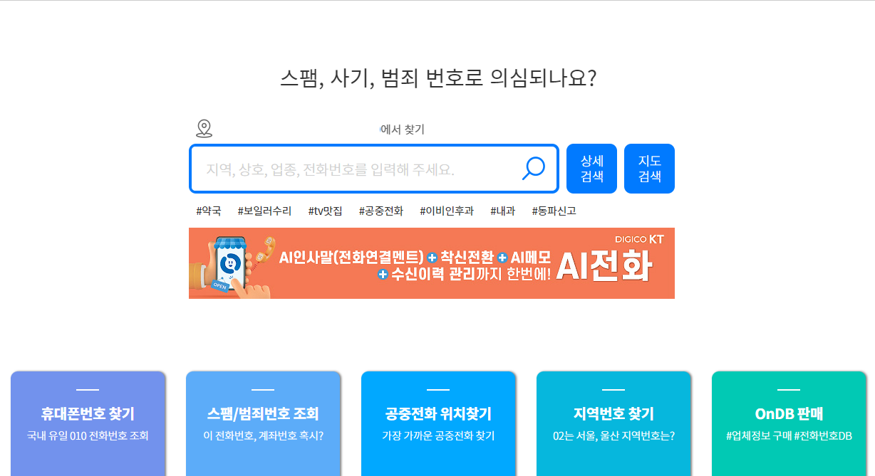 하단의 바로가기를 클릭하시면 더 콜 페이지로 이동합니다. 모르는 전화번호를 검색창에 입력한 후 검색했을때, 해당 전화번호가 어떤 전화번호인지 확인 할 수 있습니다.