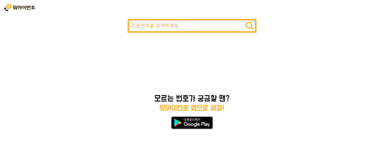 하단의 바로가기를 클릭하시면 뭐야 이 번호 페이지로 이동합니다. 상단에서 소개 해 드린 웹사이트와 같이 검색창에 모르는 전화번호를 입력한 후 우측 돋보기 모양을 클릭하면 하단 사진과 같이 어떤 번호인지 검색 해 줍니다.
