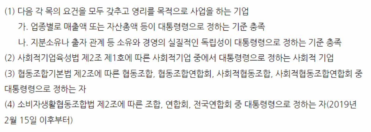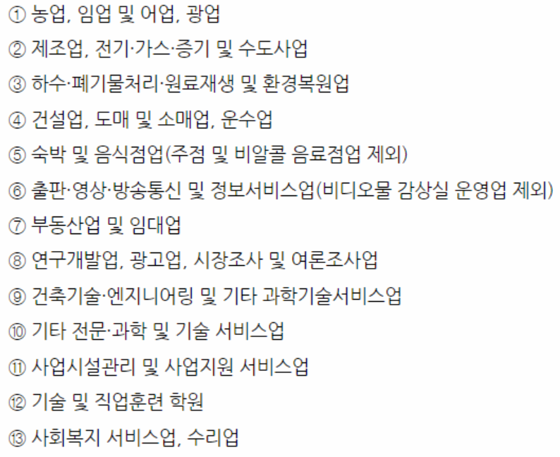 감면 대상 기업은 중소기업법 제2조에 해당하여야 하며 감면 대상 업종을 주된 사업으로 영위하는 조건을 충족해야 합니다. 보건업이나 금융 보험업, 전문 서비스업, 공공기관 및 지방공기업 등 감면 대상 업종이 아닙니다.